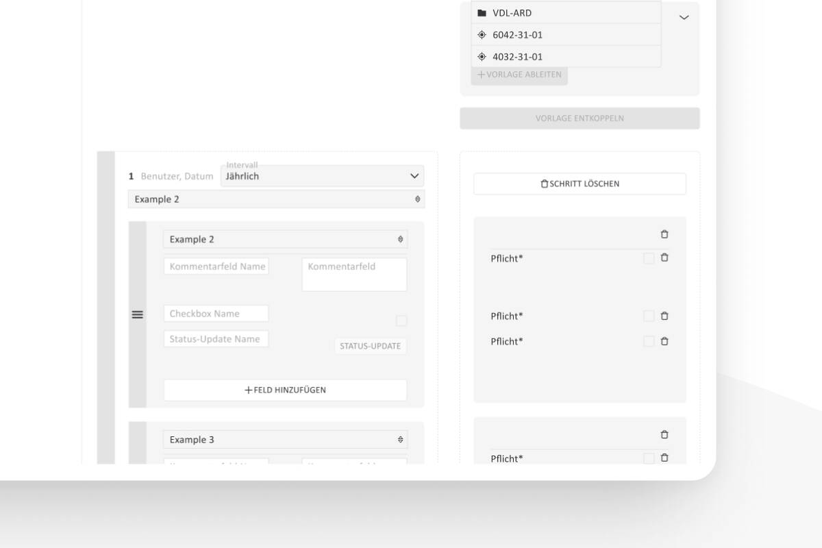 Berechtigte Nutzer legen fest, welche Schritte obligatorisch, optional oder besonders sind. So wird jede Wartungsvorlage individuell angepasst – klar, flexibel, effizient.